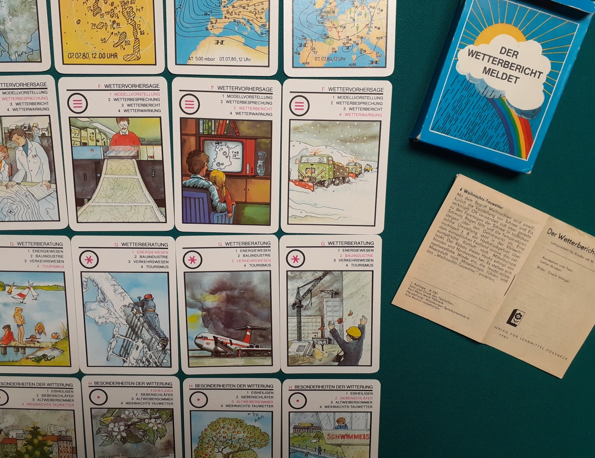 Verlag für Lehrmittel, Pössneck; Alter: Ausgabe von 1981 Anzahl der Karten: 8 Quartette mit allen 32 Karten Größe der Karten: 10 x 7 cm Rückseite: Wolken blau-weiß Zustand: nicht bespielt, Karton leicht bestoßen; sehr guter altersgemäßer Zustand; Quartette: