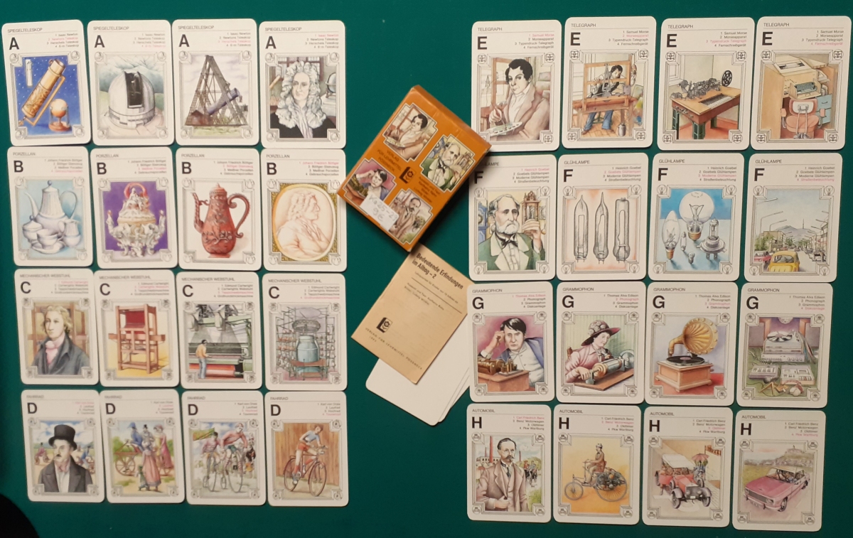 Verlag für Lehrmittel, Pössneck; Alter: Ausgabe von 1983 Anzahl der Karten: 8 Quartette mit allen 32 Karten Größe der Karten: 10 x 7 cm Rückseite: div. technische Geräte Zustand: nicht bespielt, Karton leicht bestoßen; sehr guter altersgemäßer Zustand; Quartette: