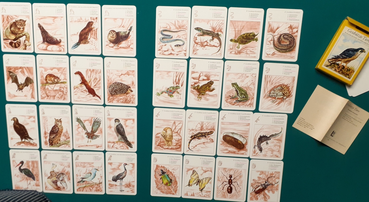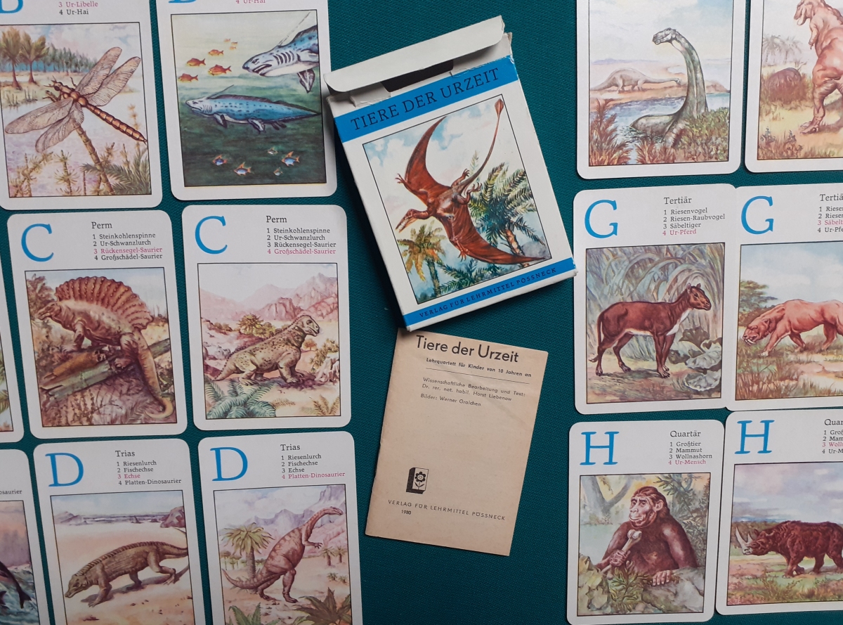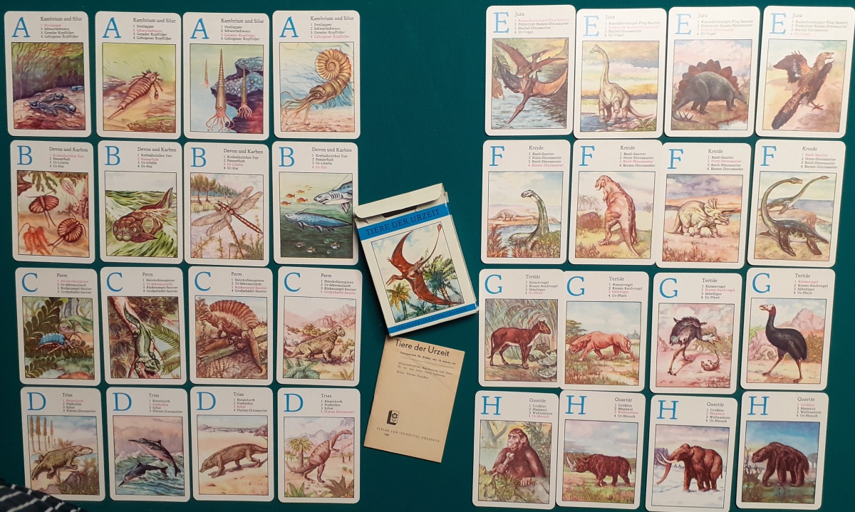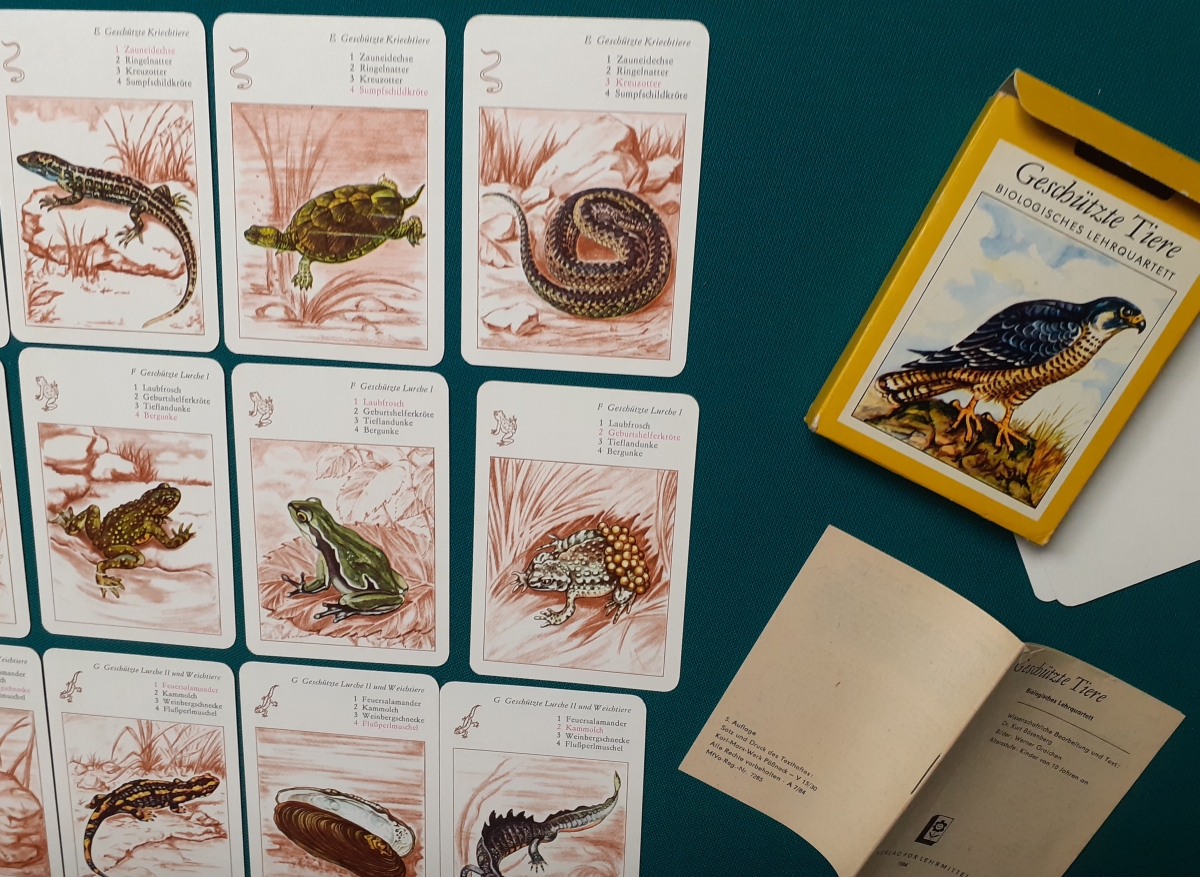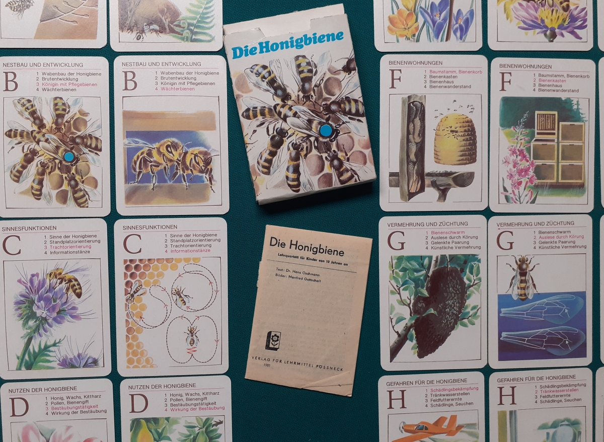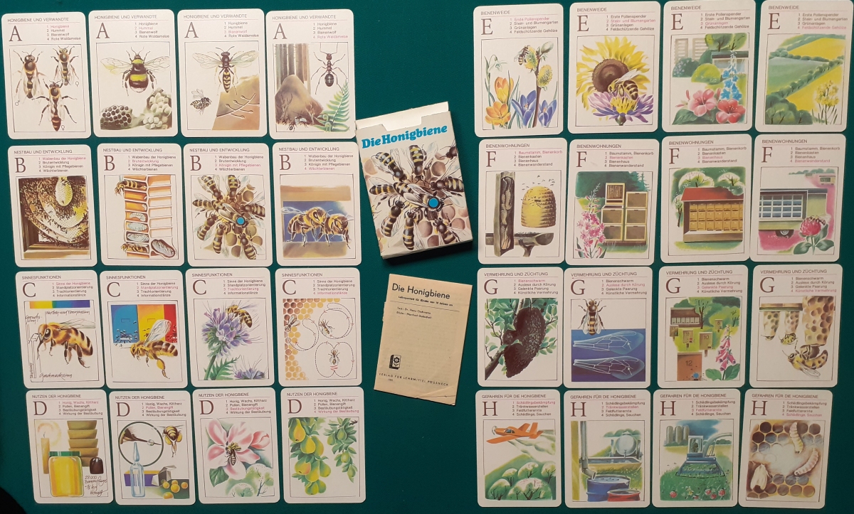 Verlag für Lehrmittel, Pössneck; Alter: 1981 Anzahl der Karten: 8 x 4 Karten = 32 Karten Größe der Karten: 10 x 7 cm Rückseite: Wabenmuster braun Zustand: offensichtlich nicht bespielt und sehr gepflegt und guter altersgemäßer Zustand Quartette: