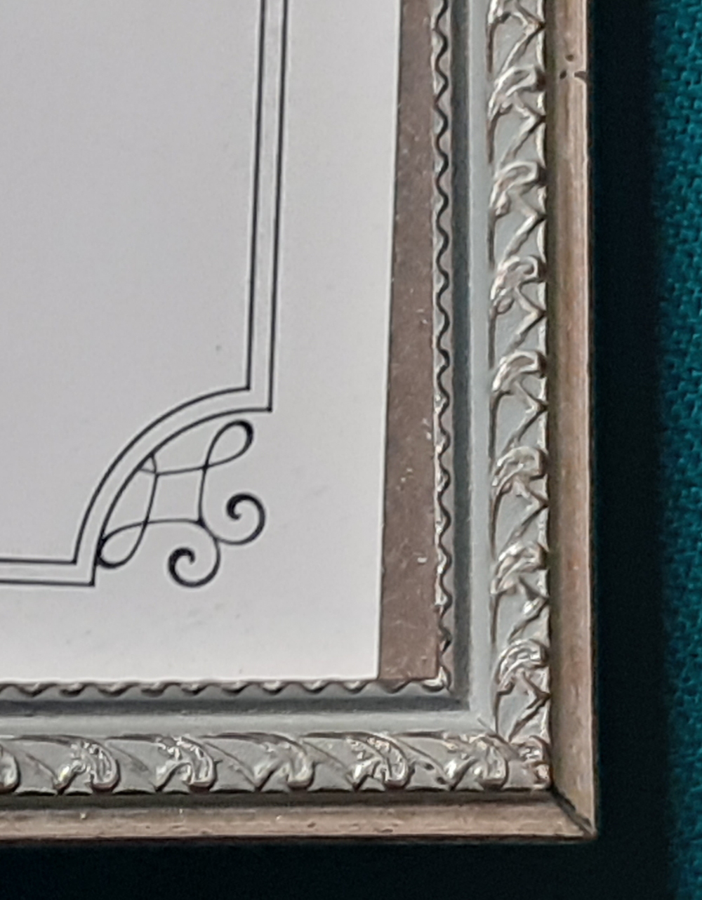 ohne Aufsteller, aber mit Aufhänger; Rahmenbreite 0,8 cm;