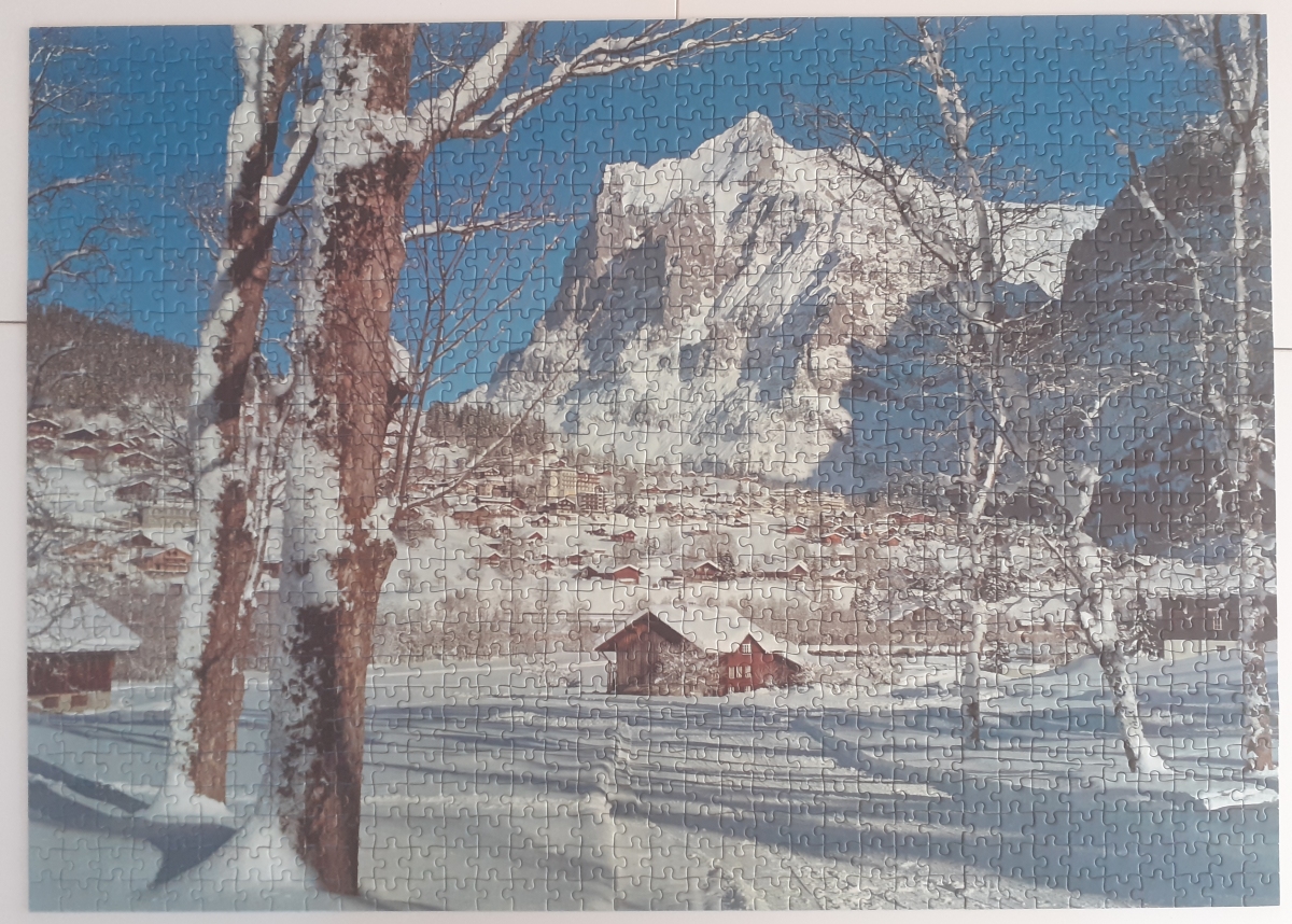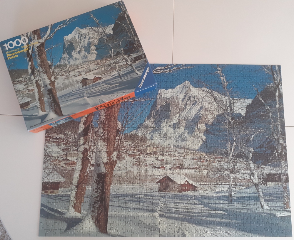 1000 Teile Art-Nr. SP-P25-15, Preis: 15 EURO Winter in Grindelwald Ravensburger Puzzle Nr. 625 5 492 4 Spiel von 1982 1000 Teile (natürlich vollständig - siehe Foto) im Format 70 x 50 cm; Karton an den Kanten bestoßen; insgesamt guter altersgemäßer Zustand |