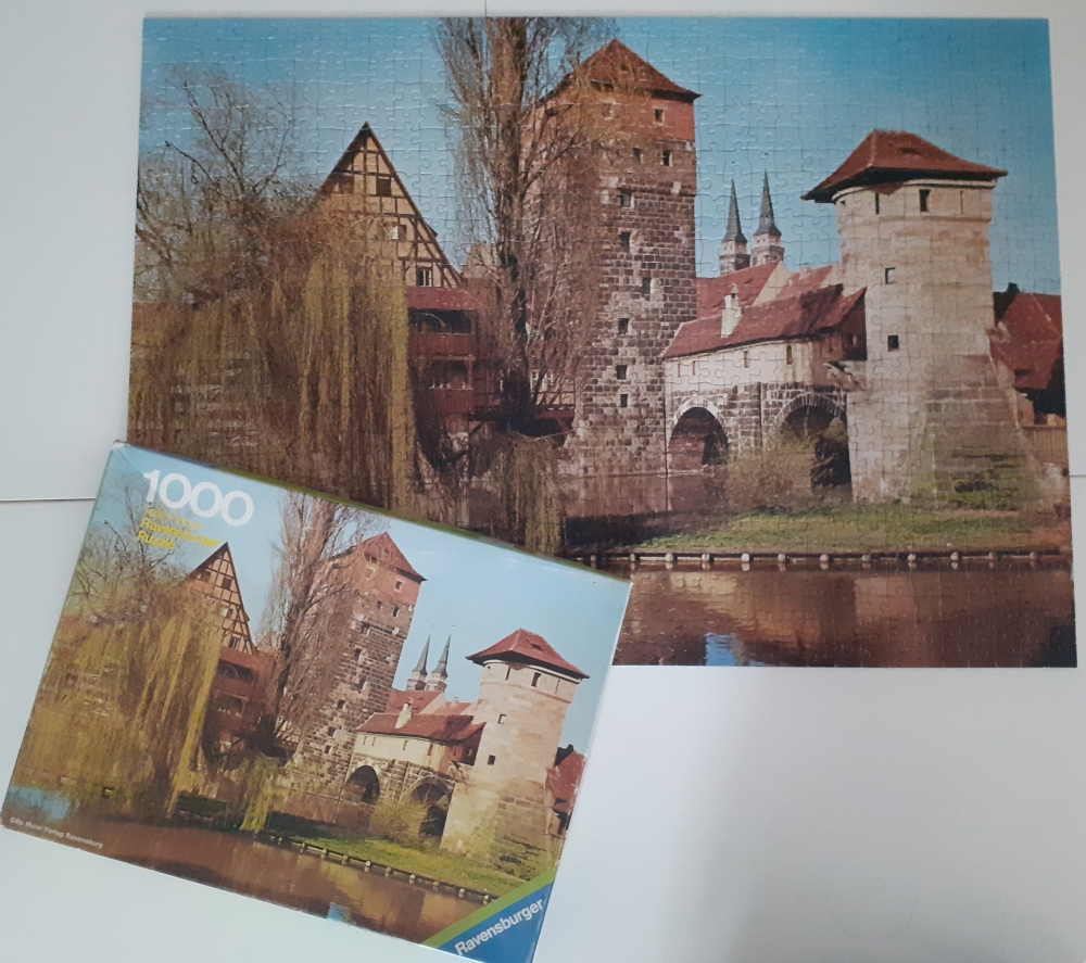 1000 Teile Art-Nr. SP-P25-16, Preis: 15 EURO Nürnberg Ravensburger Puzzle Nr. 625 5 438 X Spiel von 1975 1000 Teile (natürlich vollständig - siehe Foto) im Format 70 x 50 cm; Gebrauchsspuren; Karton an den Kanten etwas bestoßen; guter altersgemäßer Zustand |