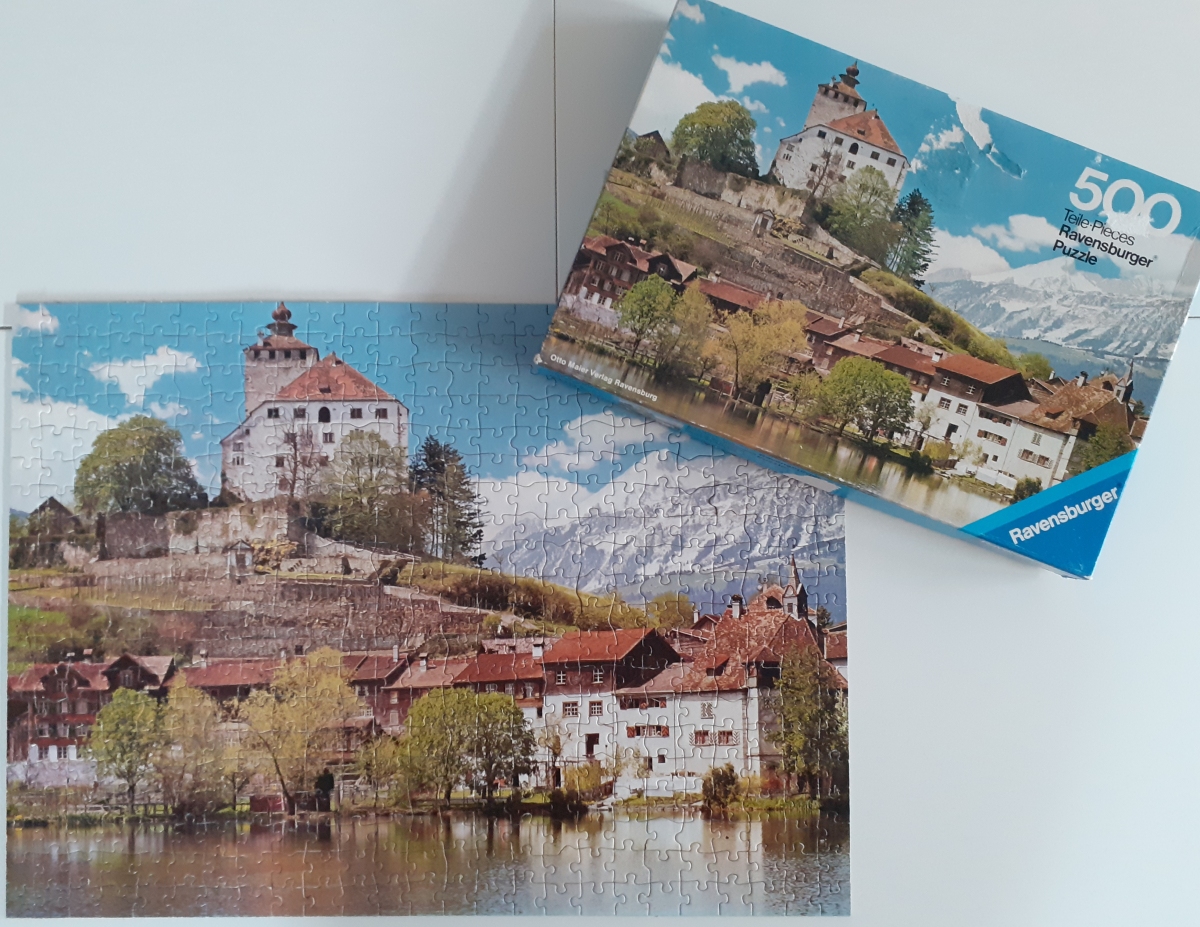 Aus der Country Serie der Ravensburger Spiele aus den 1970er Jahren 500 Teile Art-Nr. SP-P25-17, Preis: 10 EURO Burg Werdenberg Ravensburger Spiel Nr. 625 5 093 7 ca. 500 Teile - vollständig - im Format 49 x 36 cm; kleinere Gebrauchsspuren; Karton an den Kanten bestoßen Deckel berieben; sonst altersgemäß gut erhalten |