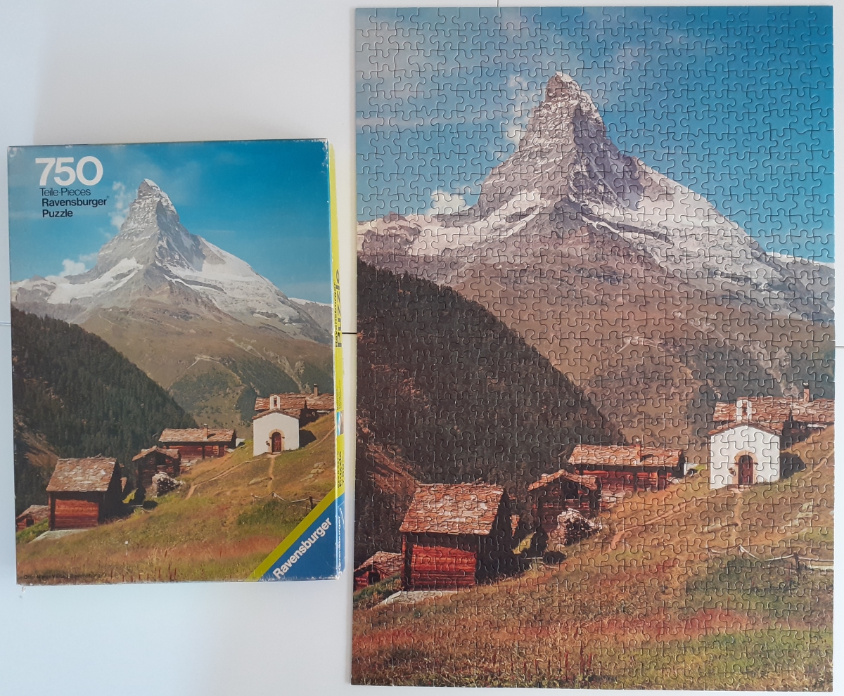1000 Teile Art-Nr. SP-P24-18, Preis: 15 EURO Matterhorn / Schweiz Ravensburger Puzzle Nr. 15.451 Spiel von 1975 1000 Teile (natürlich vollständig - siehe Foto) im Format 70 x 50 cm; Gebrauchsspuren; Karton an den Kanten bestoßen; recht guter altersgemäßer Zustand |