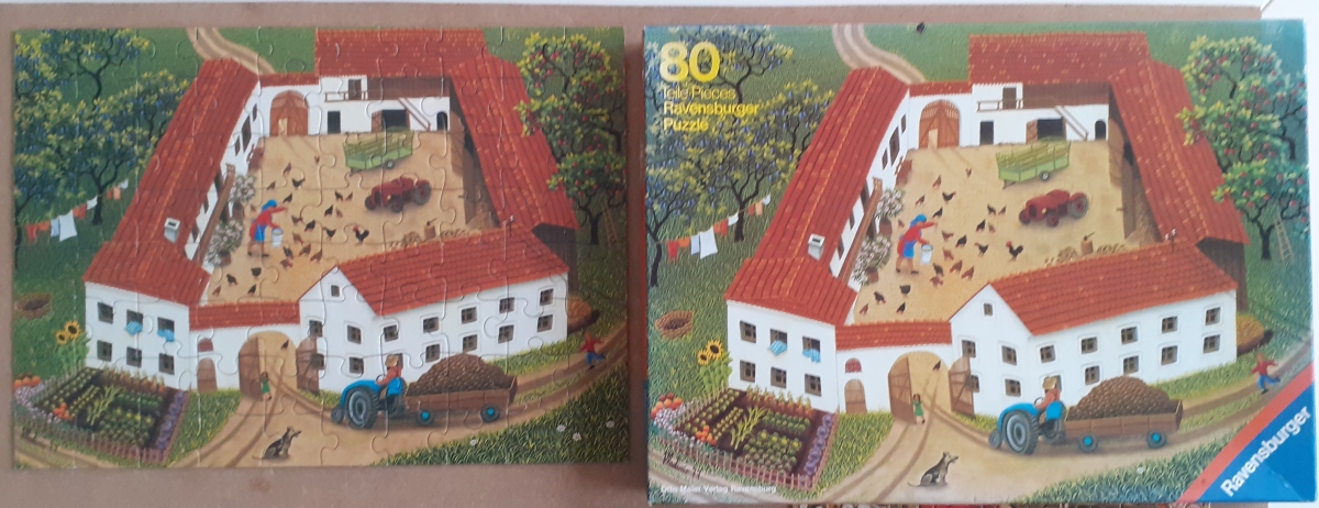 Deutschland, Hersteller: Ravensburger Spiel Nr. 623 5 777 2; bestehend aus 200 Teilen aus Pappe (vollständig), mit großen Teilen (ca. 3,5 x 3,5 cm) für Kinder ab ca. 8 Jahren; Karton im Format 27,5 x 19 cm, gelegtes Puzzle im Format ca. 42 x 30 cm; Schachtel leicht bestoßen; Teile in gutem und gepflegtem altersgemäßen Zustand Ein weiteres Puzzle von Marlier (mit 100 Teilen) siehe etwas weiter oben ... |