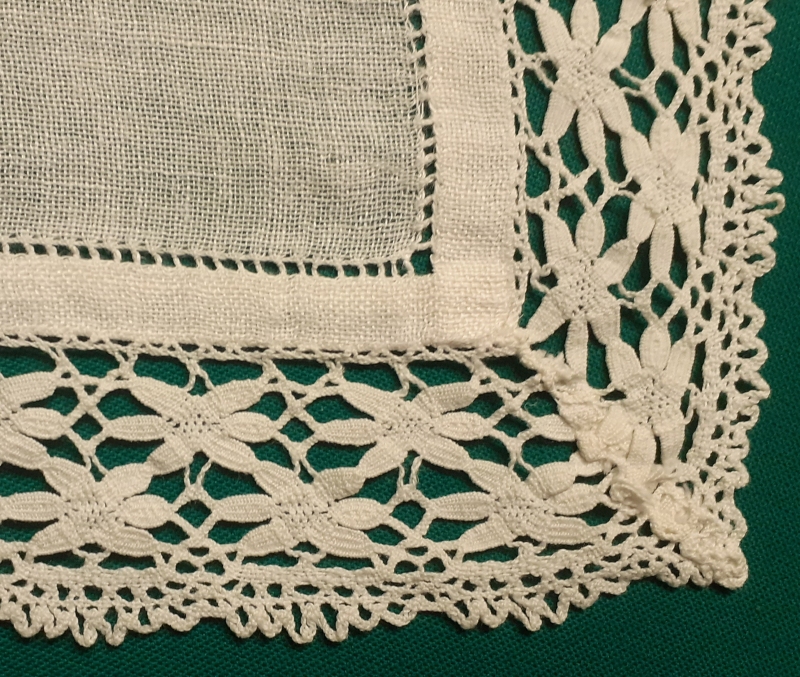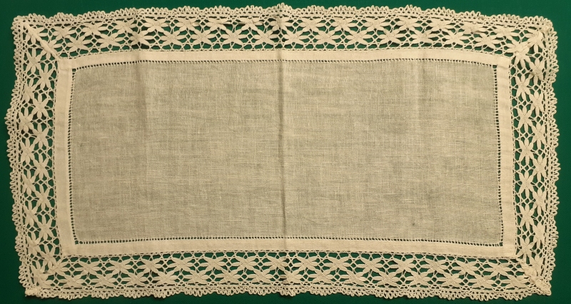 Art-Nr. T23-10, Preis: 5 EURO Deckchen mit Klöppelspitze und Hohlsaum Größe 56 x 30cm |