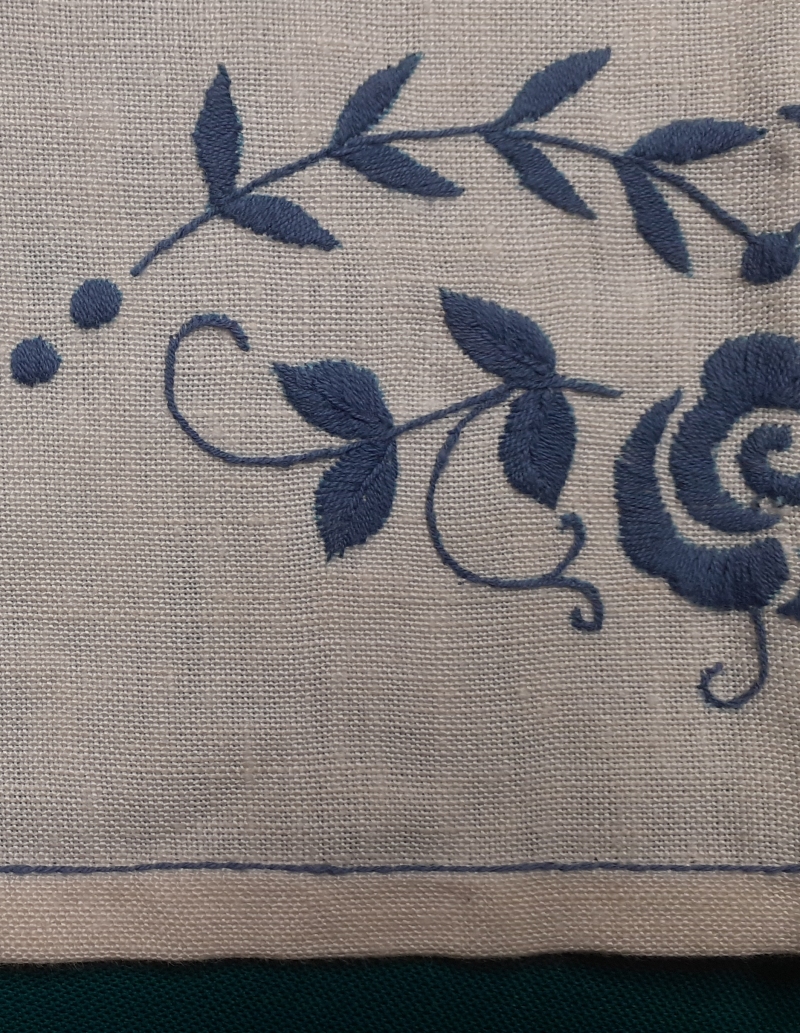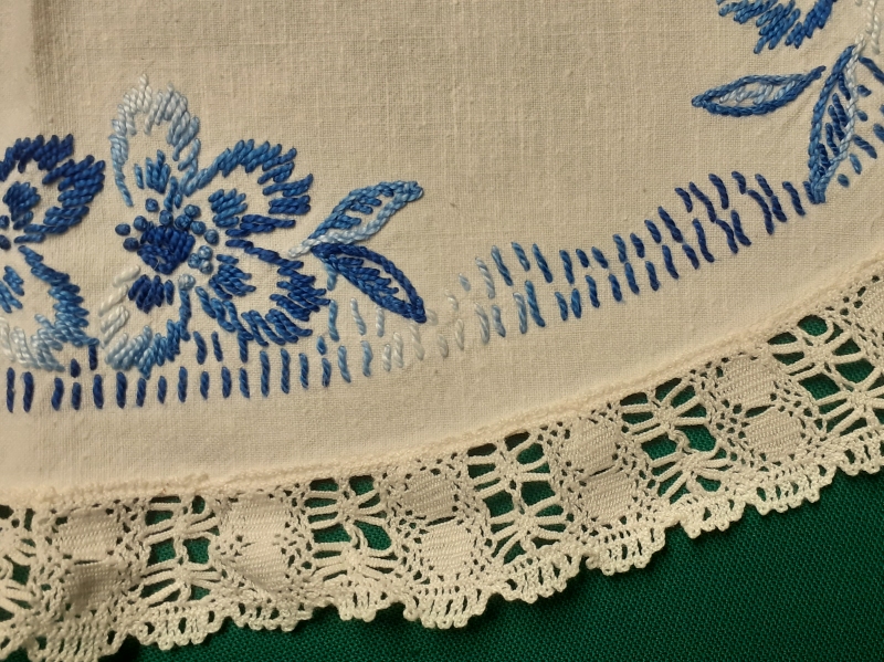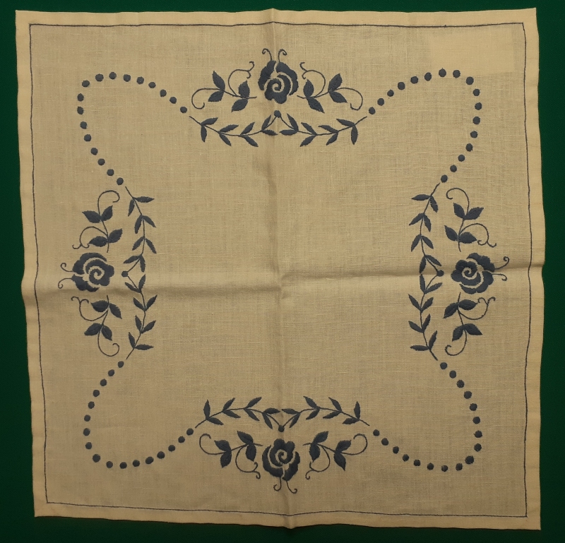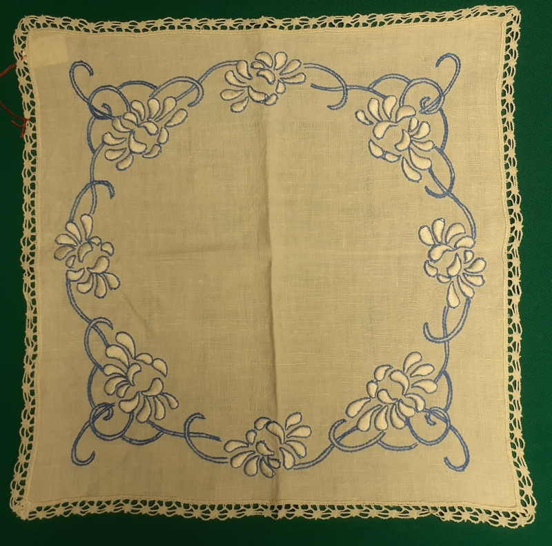 Art-Nr. TD23-8, Preis: 7 EURO Deckchen mit blauer Plattstichstickerei Größe 45 x 45 cm |