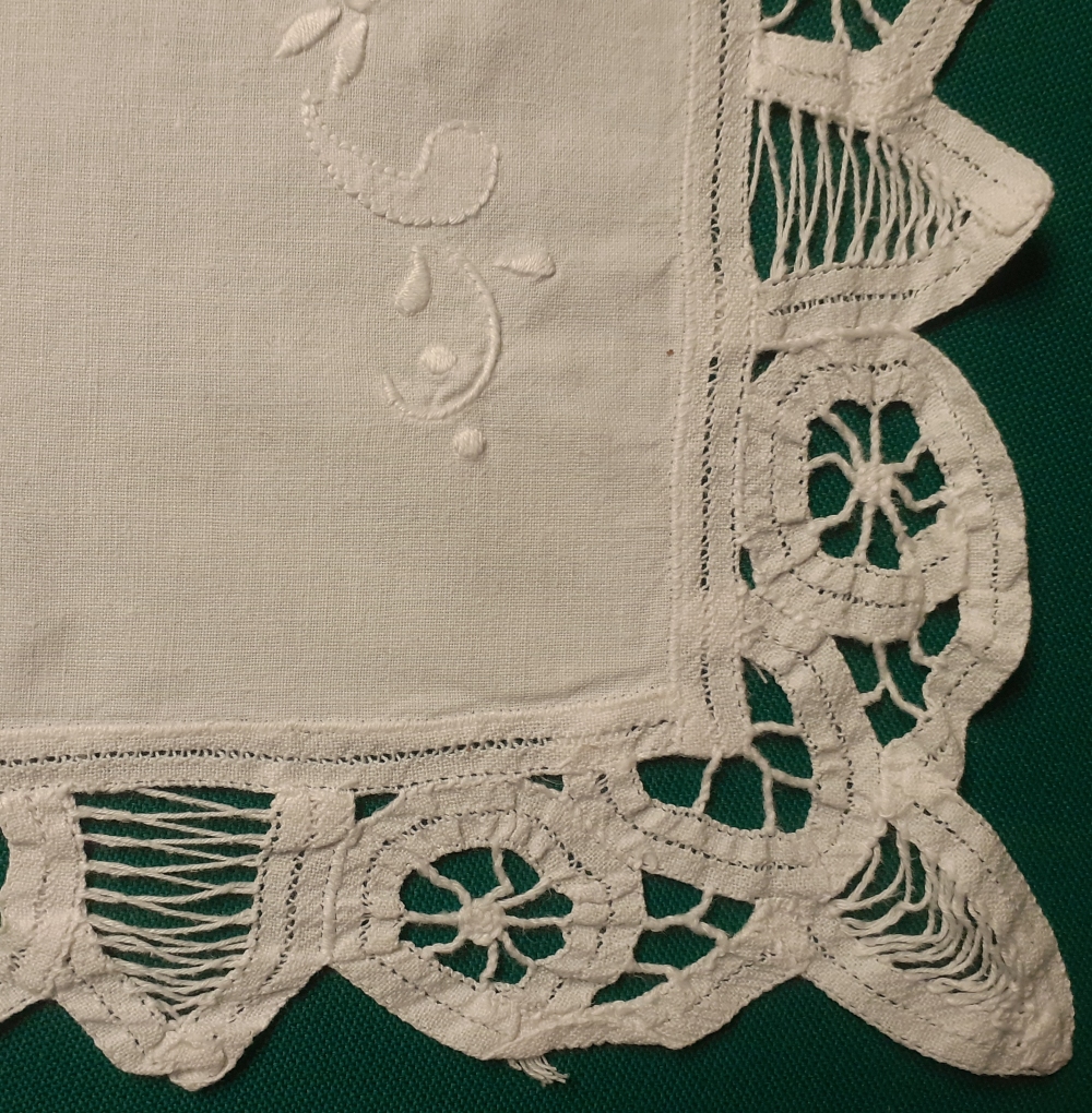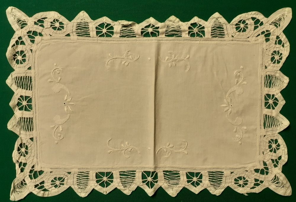 Art-Nr. T23-14, Preis: 9 EURO Deckchen aus Baumwolle mit Richelieu-Arbeit Größe 50 x 70 cm |