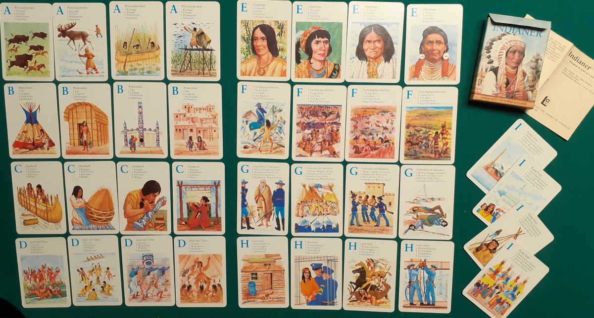 Verlag für Lehrmittel, Pössneck; Hier zur Illustratoren-Galerie mit typischen Arbeiten von Gerhard Preuß Alter: Ausgabe von 1984 Anzahl der Karten: 9 Quartette mit allen 36 Karten Größe der Karten: 10 x 7 cm Rückseite: Braunes Muster Zustand: nicht bespielt, Karton leicht bestoßen; sehr guter altersgemäßer Zustand; Quartette: