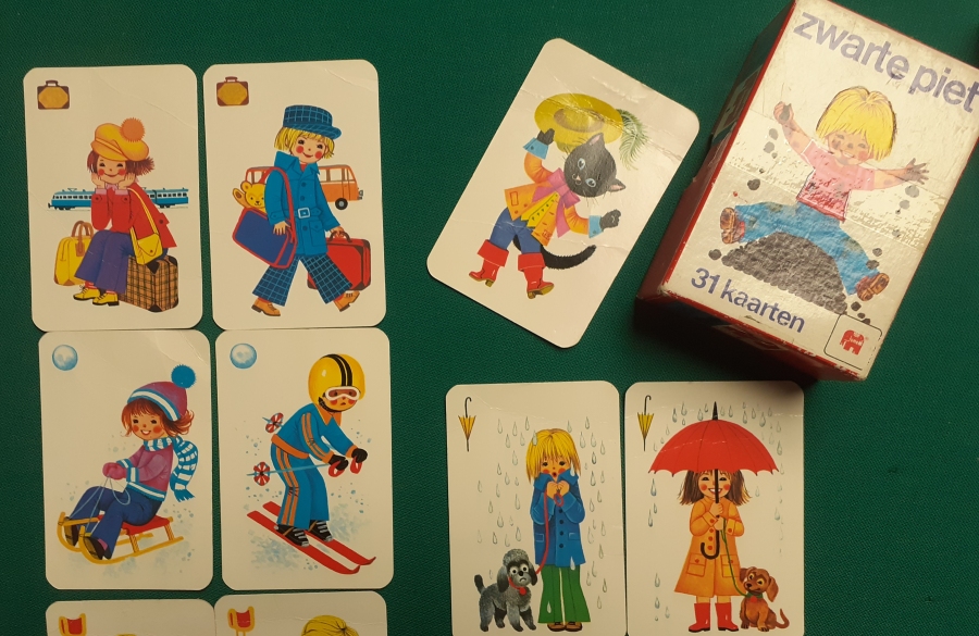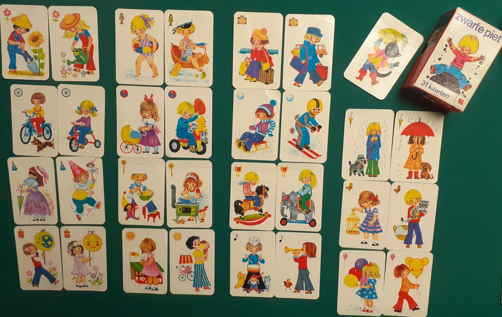 Art-Nr. KA-20-1, Preis: 6 EURO Schwarzer Peter Hersteller: ???, Nr. 627 21 h; Niederlande Spiel um 1980; vorhanden sind alle 15 Paare + Schwarzer Peter (= 31 Spielkarten) der Größe 10 x 6,5 cm, mit Kindermotiven. Die Karten weisen kleinere Gebrauchsspuren auf; insgesamt guter altersgemäßer Zustand. Mit Kunststoffbox. |