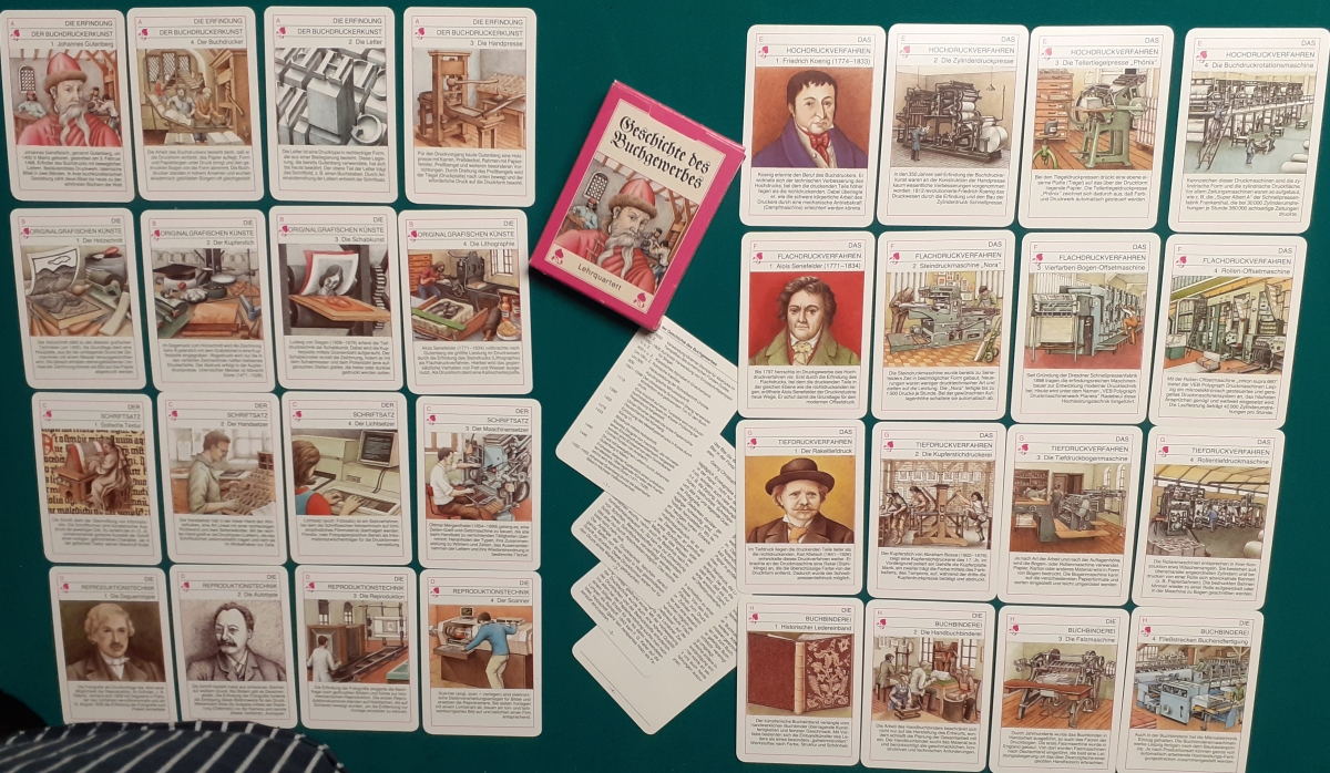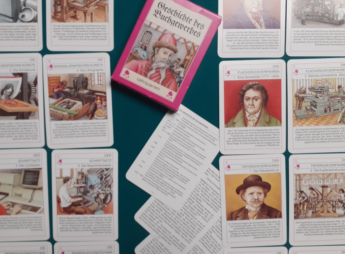 Verlag für Lehrmittel, Pössneck; Alter: Ausgabe von 1990 Anzahl der Karten: 8 Quartette mit allen 32 Karten Größe der Karten: 10 x 7 cm Rückseite: Rotes Muster Zustand: nicht bespielt, Karton leicht bestoßen; sehr guter altersgemäßer Zustand; Quartette: