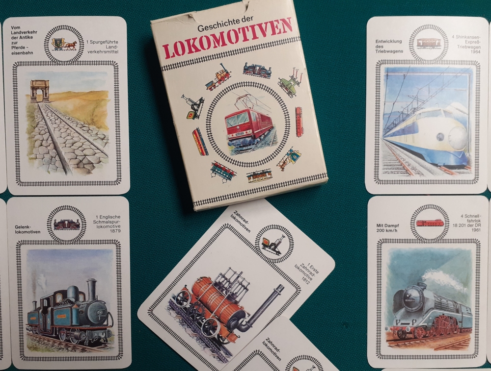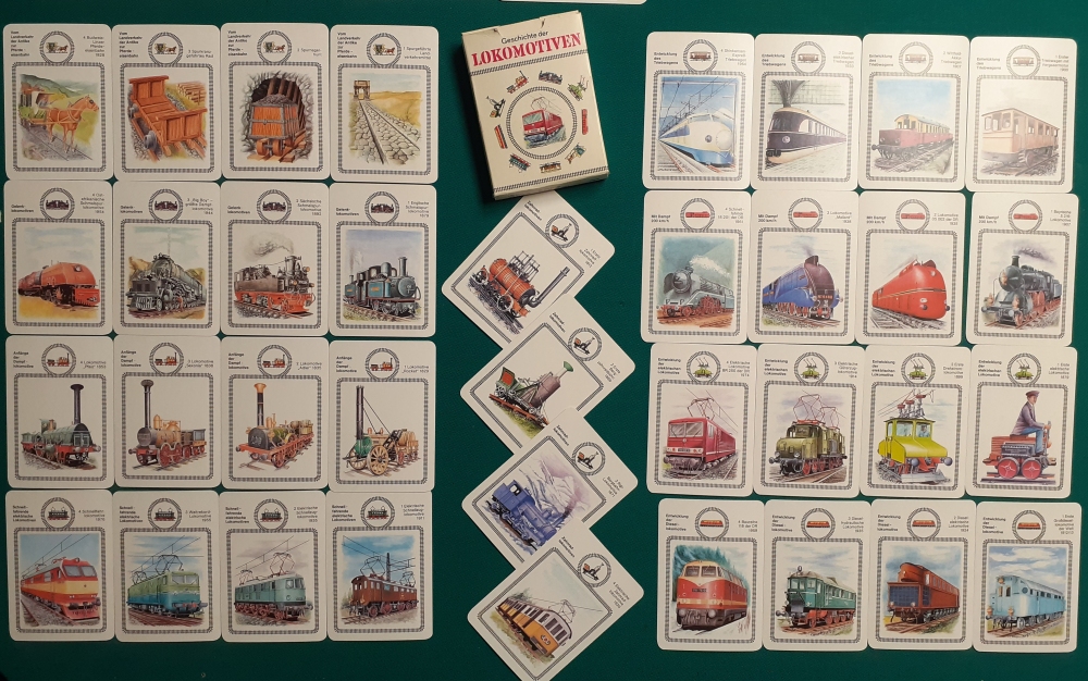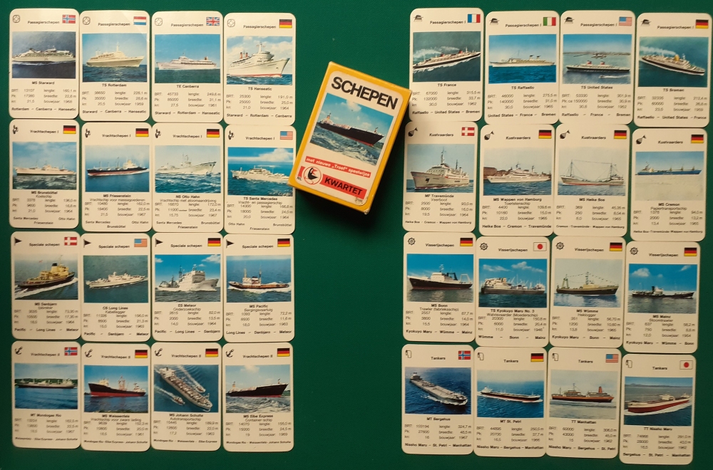 Amersfoort Alter: Ausgabe um 1970 Anzahl der Karten: 8 x 4 Karten = 32 Karten Größe der Karten: 10 x 6,5 cm Rückseite: Embleme mit Verkehrsmitteln Zustand: offenbar kaum bespielt und sehr gepflegt. Quartette: in originaler gut erhaltener Pappbox |