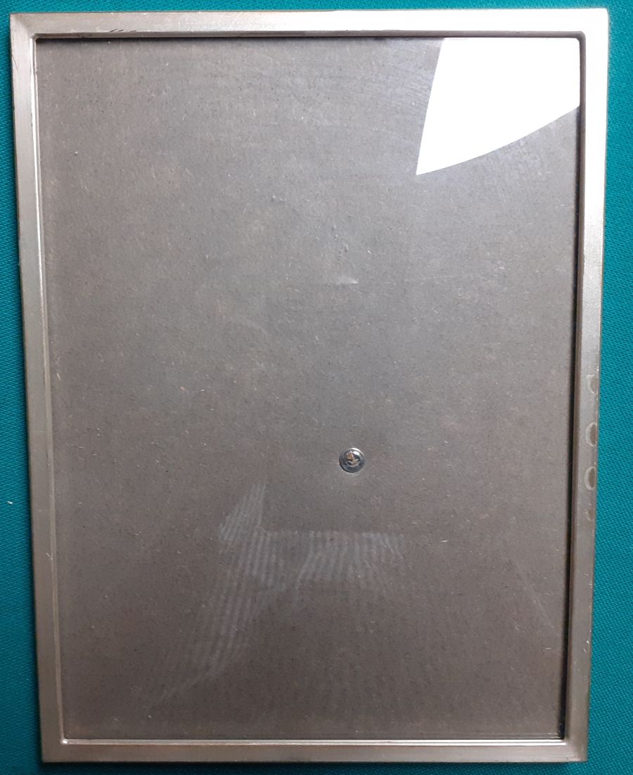Rückseite Presspappe; mit 4 metallenen Rückenklammern