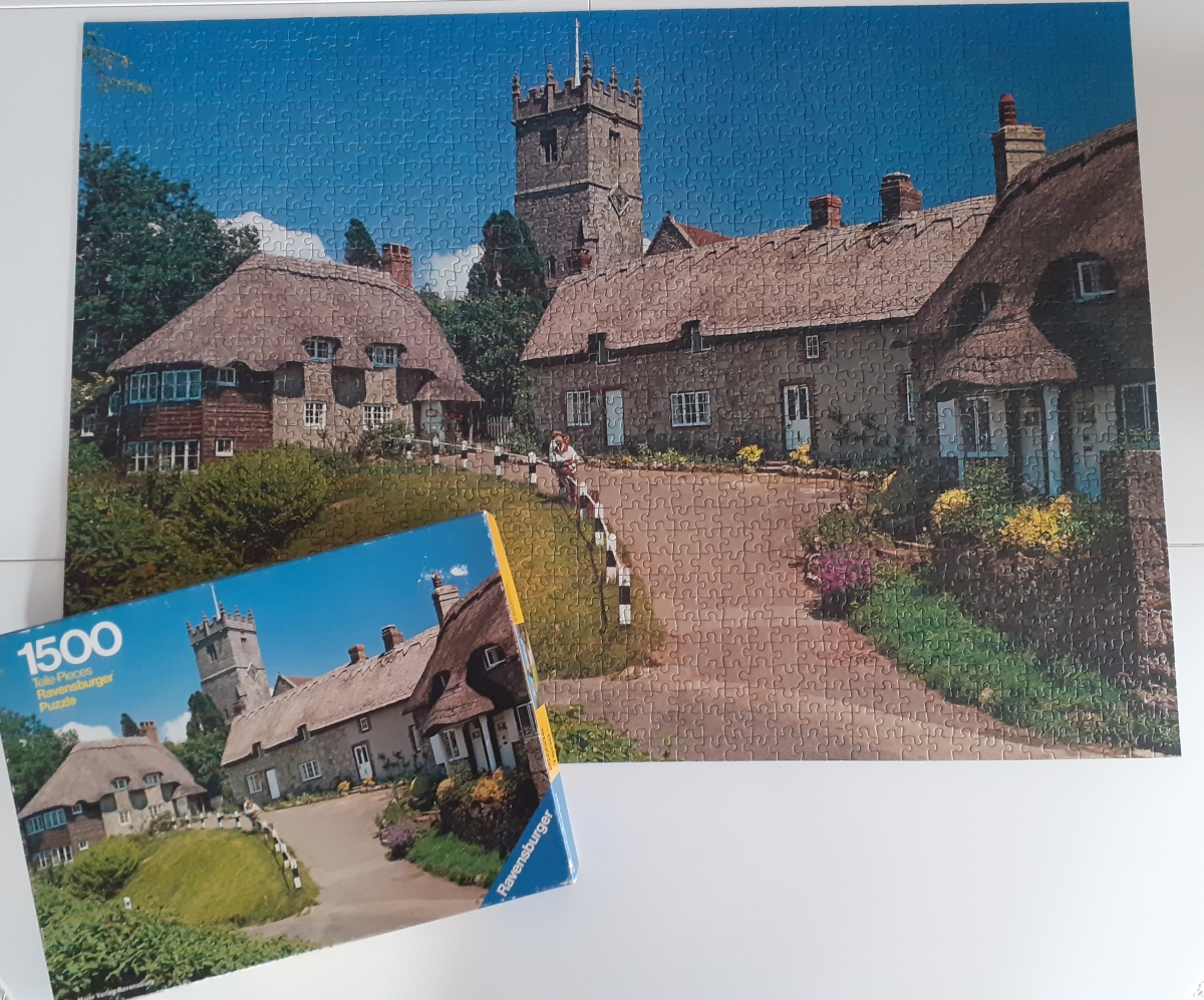 Aus der De Luxe Serie der Ravensburger Spiele aus den 1970er und 1980er Jahren 1500 Teile Art-Nr. SP-P26-5, Preis: 15 EURO In Großbritannien Ravensburger Spiel Nr. 625 5 679 X Spiel von 1982 1500 Teile mit allen Teilen komplett im Format 84 x 59,5 cm; leichte Gebrauchsspuren; sehr gepflegt und Teile altersgemäß sehr gut erhalten; Karton an den Kanten etwas bestoßen. |