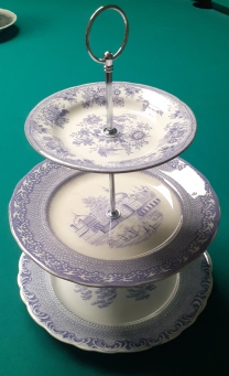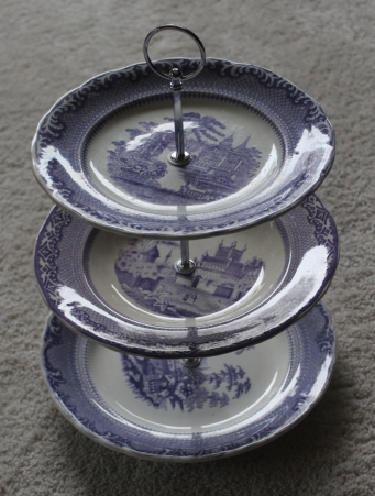 Art-Nr. P-6a, Preis: 19 EURO Etagere aus drei violetten Tellern der schwedischen Manufakturen Rörstrand und Gustavsberg aus den 1920er Jahren: unterer Teller Spets(Rörstrand),