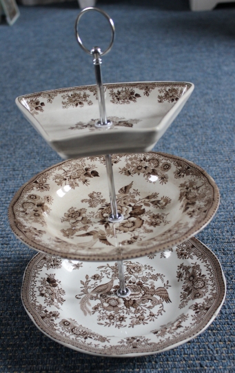 Art-Nr. P-6c, Preis: 19 EURO Etagere aus drei dunkelbraunen Tellern der schwedischen Manufaktur Gustavsberg aus den 1920er Jahren: unterer Teller