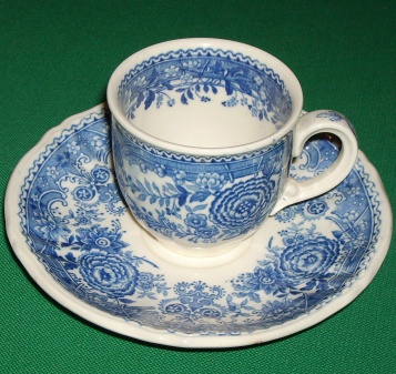 Kaffee-Tasse Tasse: Durchmesser 8 cm, Höhe 7 cm; Untertasse:Durchmesser 14 5 cm unbestoßen, leichte Gebrauchsspuren, zur Zeit vergriffen |