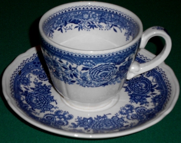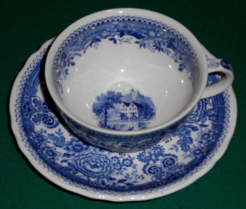 Tee-Tasse (alte Form) Tasse: Durchmesser 9,5 cm, Höhe 6 cm; Untertasse: Durchmesser 14,5 cm unbestoßen, leichte Gebrauchsspuren zur Zeit vergriffen |