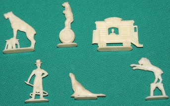 Art-Nr. SOMA-14-10, Preis: 6 EURO Gruppe mit 6 Figuren: Hersteller: Münsterland (gemarkt) Größe z. B. Zirkuswagen 4,5 x 3,5 cm |