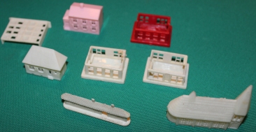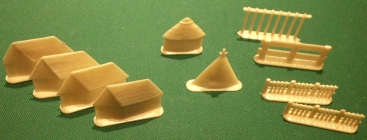 Art-Nr. SOMA-29-12, Preis: 5 EURO Gruppe mit 10 Figuren: Hersteller: nicht gemarkt Größe z. B. Scheune mit Satteldach: 4 x 3 cm |