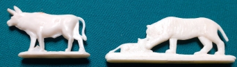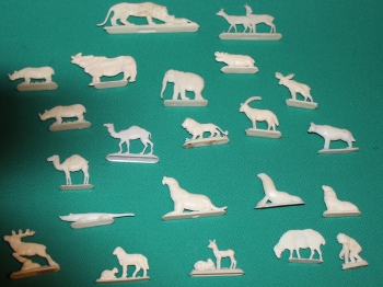 Art-Nr. SOMA-21-6, Preis: 4 EURO Gruppe mit 3 Figuren: Wapiti (Voss Margarine gemarkt) Strauß und Bär (Münsterland Margarine gemarkt) |