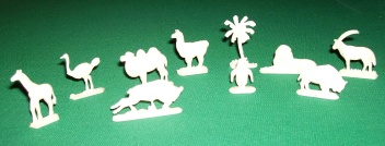 Art-Nr. SOMA-14-15, Preis: 5 EURO 9 wildeTiere koloriert: Hersteller: diverse (nicht gemarkt) Größe z. B. Kamel 3,5 x 4 cm |
