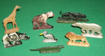 Art-Nr. SOMA-14-4, Preis: 5 EURO Gruppe mit 4 Figuren: Hersteller: 2 x Sanella, 2 x Margarine Union (gemarkt) Größe z. B. Krokodil 5 x 3,5 cm |
