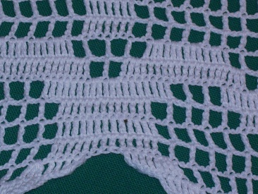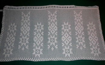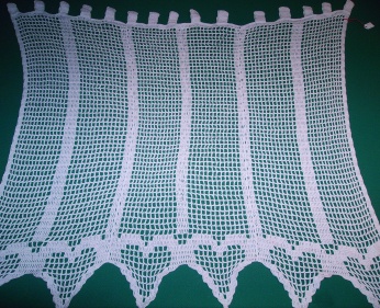 Artikel Nr. T-469-10; 7 EURO Wunderschöne weiße Häkelgardine mit Schlaufen für eine Gardinenstange; Handarbeit Maße: 67 x 80 cm |