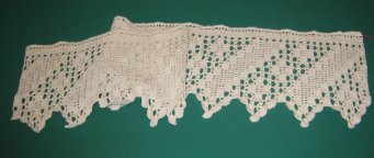 Artikel Nr. TG19-2b; 6 EURO Häkelgardine Handarbeit, natur - eingehäkelter Lochrand für eine Gardinenstange Maße: 21 x 95 cm |